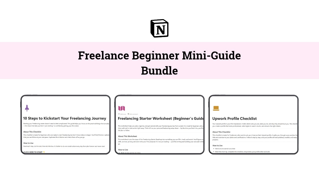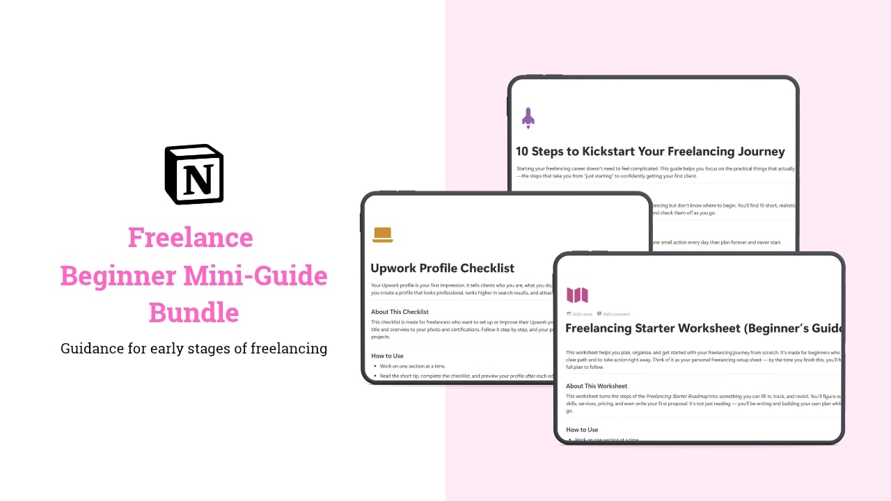 A beginner friendly Notion workspace that helps you stay organised, remove confusion, and start freelancing with confidence.