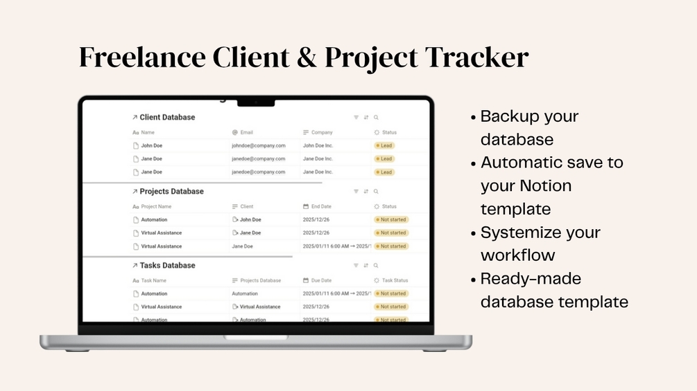 Beginners who want a simple system for clients, projects, payments and notes without manually checking everything.
