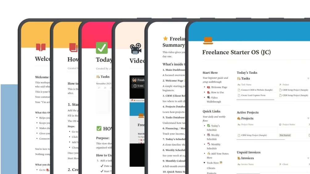 The Freelance Starter OS hands you a complete, ready-to-go workflow ā plug-and-play from day one.
